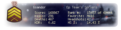 | Kill-streak | 6 | Death-streak | 16 | Team Kills | 0 |