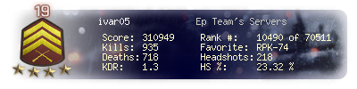 | Kills | 887 | Deaths | 684 | Kill / Death | 1.3 |