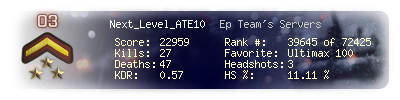 | Headshots | 3 | Suicides | 0 | Headshot / Kill | 11.11 % |