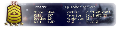 | Headshots | 42 | Suicides | 4 | Headshot / Kill | 21.32 % |