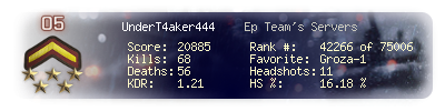 | Headshots | 11 | Suicides | 4 | Headshot / Kill | 16.18 % |