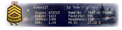 | Headshots | 459 | Suicides | 82 | Headshot / Kill | 17.08 % |