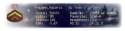 | Kill-streak | 6 | Death-streak | 16 | Team Kills | 1 |