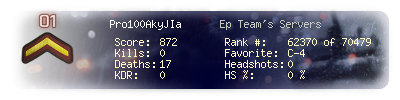 | Kill-streak | 0 | Death-streak | 18 | Team Kills | 0 |