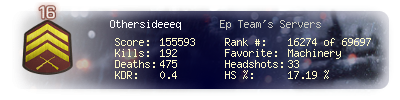 | Kills | 192 | Deaths | 475 | Kill / Death | 0.4 |