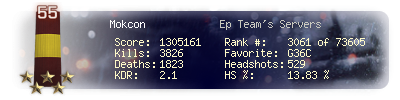 | Kills | 3397 | Deaths | 1620 | Kill / Death | 2.1 |