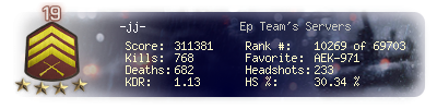 | Headshots | 290 | Suicides | 3 | Headshot / Kill | 29.23 % |