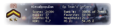 | Headshots | 20 | Suicides | 0 | Headshot / Kill | 54.05 % |