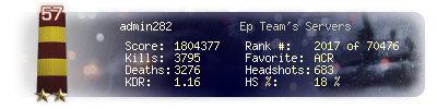 | Kills | 3811 | Deaths | 3302 | Kill / Death | 1.15 |