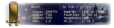 | Kills | 8638 | Deaths | 5880 | Kill / Death | 1.47 |