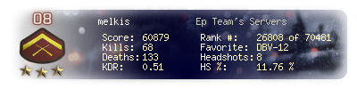 | Headshots | 3 | Suicides | 8 | Headshot / Kill | 7.69 % |