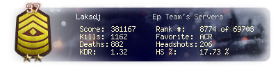 | Headshots | 141 | Suicides | 4 | Headshot / Kill | 16.04 % |