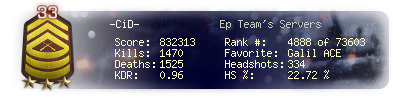 | Headshots | 334 | Suicides | 10 | Headshot / Kill | 22.72 % |