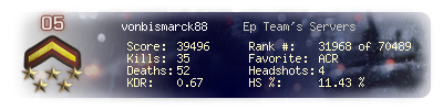 | Kill-streak | 3 | Death-streak | 5 | Team Kills | 0 |