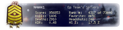 | Kills | 1406 | Deaths | 2910 | Kill / Death | 0.48 |