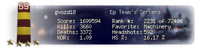 | Kill-streak | 15 | Death-streak | 13 | Team Kills | 6 |
