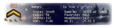 | Kills | 54 | Deaths | 112 | Kill / Death | 0.48 |