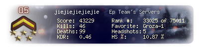 | Kill-streak | 4 | Death-streak | 27 | Team Kills | 0 |