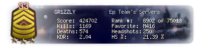 | Headshots | 250 | Suicides | 5 | Headshot / Kill | 21.39 % |