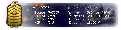 | Headshots | 585 | Suicides | 4 | Headshot / Kill | 19.36 % |