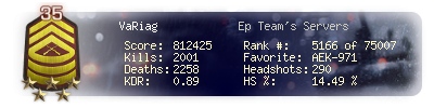 | Kills | 2001 | Deaths | 2258 | Kill / Death | 0.89 |