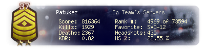 | Kills | 1805 | Deaths | 2200 | Kill / Death | 0.82 |