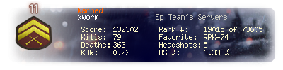 | Kill-streak | 3 | Death-streak | 18 | Team Kills | 0 |