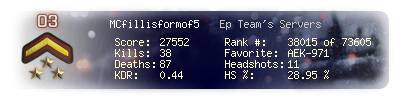 | Kills | 38 | Deaths | 87 | Kill / Death | 0.44 |
