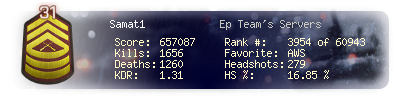 | Headshots | 279 | Suicides | 17 | Headshot / Kill | 16.85 % |