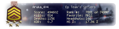 | Kill-streak | 7 | Death-streak | 13 | Team Kills | 0 |