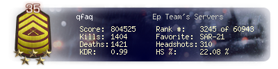 | Headshots | 310 | Suicides | 7 | Headshot / Kill | 22.08 % |