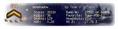 | Kills | 36 | Deaths | 129 | Kill / Death | 0.28 |