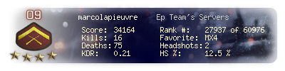 | Kills | 16 | Deaths | 75 | Kill / Death | 0.21 |