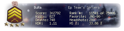 | Headshots | 280 | Suicides | 2 | Headshot / Kill | 33.86 % |