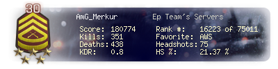 | Headshots | 75 | Suicides | 4 | Headshot / Kill | 21.37 % |