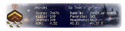 | Kills | 109 | Deaths | 208 | Kill / Death | 0.52 |