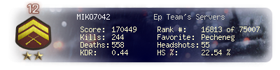 | Kill-streak | 8 | Death-streak | 22 | Team Kills | 0 |