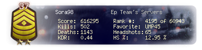 | Kill-streak | 6 | Death-streak | 15 | Team Kills | 0 |