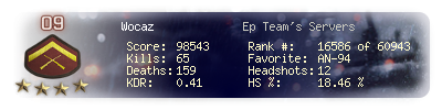 | Kills | 65 | Deaths | 159 | Kill / Death | 0.41 |
