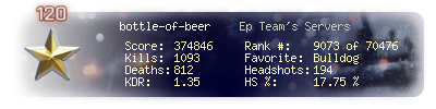 | Headshots | 194 | Suicides | 3 | Headshot / Kill | 17.75 % |
