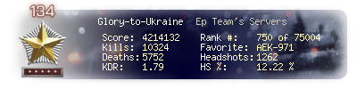 | Kills | 10324 | Deaths | 5752 | Kill / Death | 1.79 |