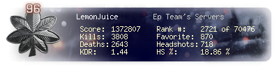 | Headshots | 1818 | Suicides | 114 | Headshot / Kill | 16.73 % |