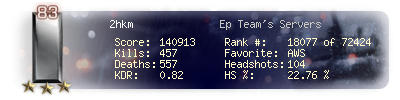 | Kills | 457 | Deaths | 557 | Kill / Death | 0.82 |