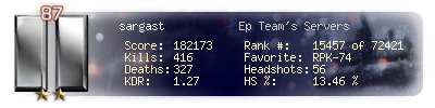 | Kills | 416 | Deaths | 327 | Kill / Death | 1.27 |