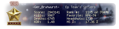 | Headshots | 1730 | Suicides | 61 | Headshot / Kill | 17.36 % |