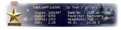 | Kill-streak | 38 | Death-streak | 8 | Team Kills | 1 |