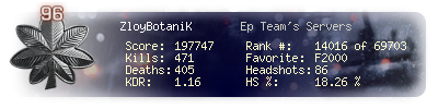 | Kill-streak | 8 | Death-streak | 9 | Team Kills | 0 |