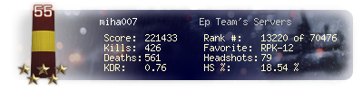 | Kills | 426 | Deaths | 561 | Kill / Death | 0.76 |