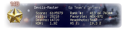 | Kills | 28218 | Deaths | 14720 | Kill / Death | 1.92 |
