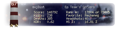 | Kills | 238 | Deaths | 385 | Kill / Death | 0.62 |
